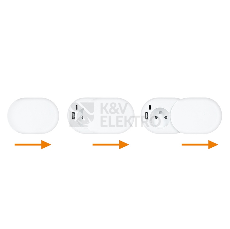 Posuvné víčko v matném bílém provedení působí elegantně a nenápadně, zejména v bílém nábytku. Posuvný mechanismus chrání zásuvku i nabíjecí porty před prachem a nečistotami. Navíc lze odhalit jen USB porty a síťovou zásuvku ponechat zakrytou. Zakryté víčko zachovává čistý vzhled pracovní plochy.