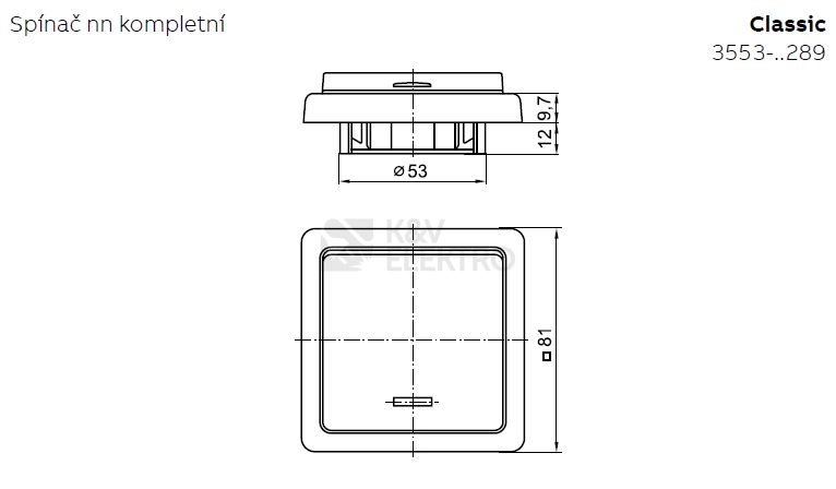 Hnědý vypínač č. 1 ABB Classic 3553-01289 H3 s nedělenou klapkou má stupeň krytí IP20, jmenovitý proud 10 A a napětí 250 V. Spínač č. 1 je upevněný šrouby a má i šroubové svorky pro vodiče 1 – 2,5 mm2.