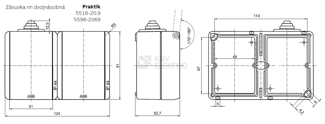 Specifikace dvojzásuvky ABB Praktik, 5518-2029 H