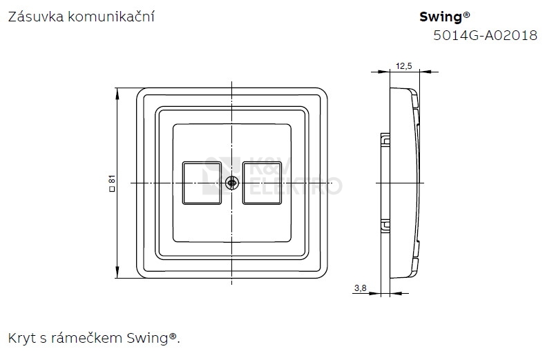 Kryt zásuvky Swing komunikační v plochém provedení s kovovým upevňovacím třmenem.