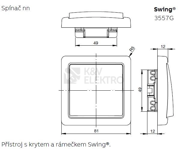 Vypínač je kompatibilní s rámečky ABB Swing i ABB Swing L. K vypínači je potřeba také elektroinstalační krabice.