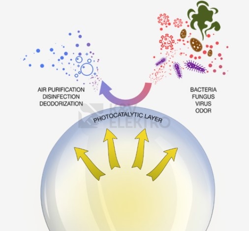 Nová technologie fotokatalytického osvětlení - účinná proti bakteriím a neutralizuje nepříjemný zápach.