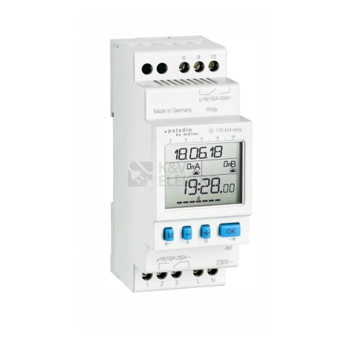 Hodiny spínací PALADIN 170424easy, dig., ASTRONOM., 2kan., 2mod., se zálohou, šedé, na DIN, NFC, týdenní program, 56 úložných míst.