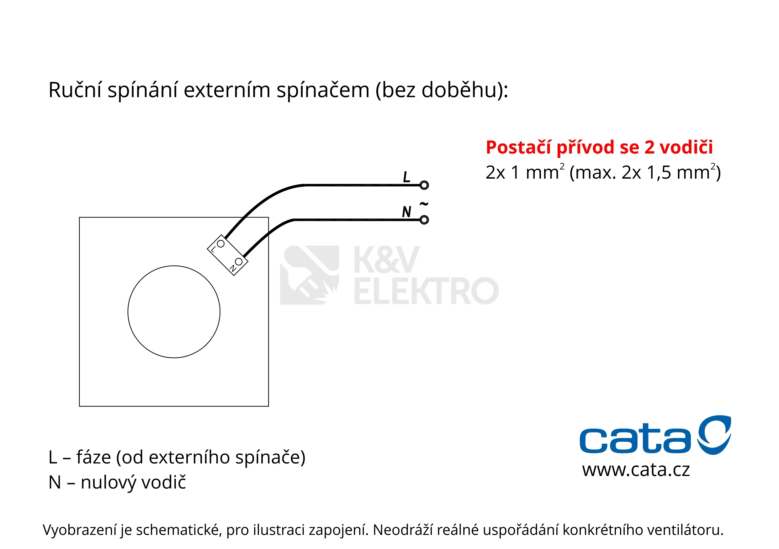 Pro správné připojení ventilátoru s ovládací fází použijte kabel s druhým fázovým vodičem navíc. Při instalaci zapojujte vodiče o průřezu min 1mm2 (a max 1,5mm2). K ventilátoru byla přidána bezšroubová svorkovnice pro co nejsnazší manipulaci.