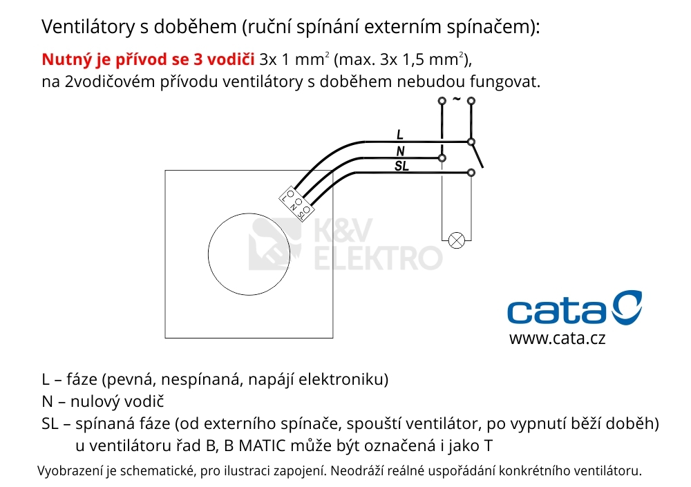 Pro správné připojení ventilátoru s ovládací fází použijte kabel s druhým fázovým vodičem navíc. Při instalaci zapojujte vodiče o průřezu min 1mm2 (a max 1,5mm2). K ventilátoru byla přidána bezšroubová svorkovnice pro co nejsnazší manipulaci.