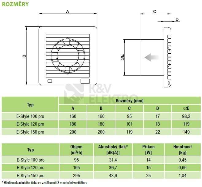 Specifikace ventilátoru E-style 100 pro t