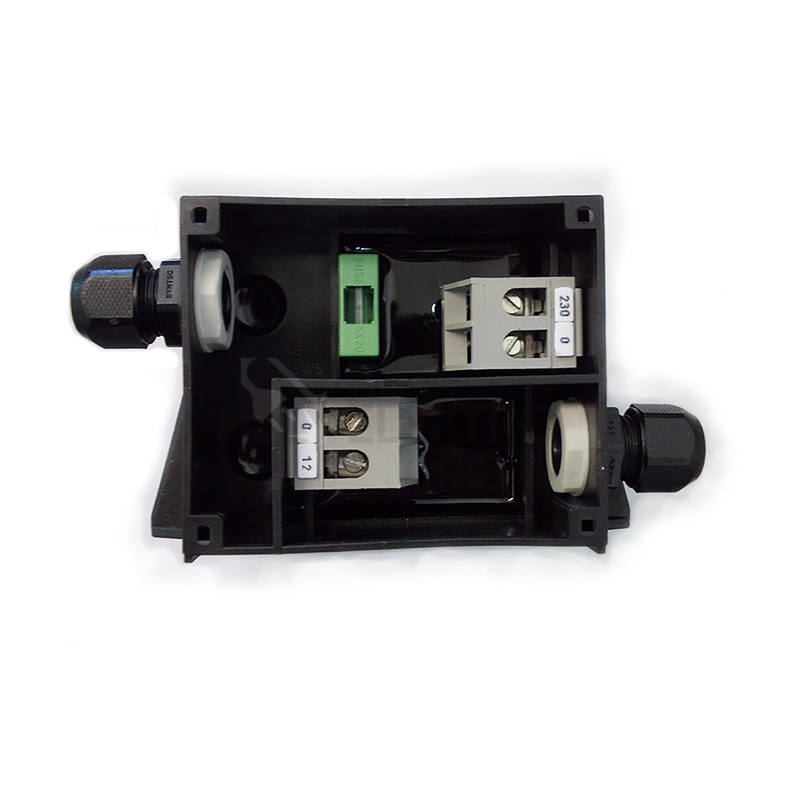 Bazénový transformátor Elzat JT 50VA 230/12V zajišťuje bezpečné a spolehlivé napájení pro vaše LED bazénové osvětlení. Díky krytí IP54 je chráněn proti prachu a stříkající vodě. Instalace je snadná díky integrovaným kabelovým průchodkám a jištění primární strany pojistkou, která chrání zařízení před přetížením.