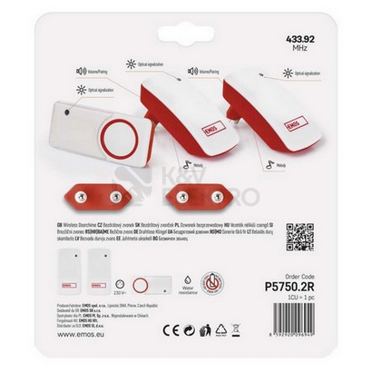 Bezbateriový domovní bezdrátový zvonek EMOS P5750.2R do zásuvky