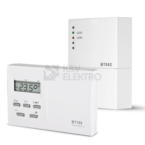 Bezdrátový termostat lze ovládat dálkově pomocí počítače nebo chytrého telefonu. Představuje tak nenáročný a pohodlný způsob regulace teploty. Spojení mezi termostatem a kotlem nebo klimatizací probíhá pomocí kódů radiových signálů, které zabezpečují bezporuchový provoz. Vybírejte z širokého sortimentu bezdrátových termostatů od prověřených výrobců ELEKTROBOCK nebo Auraton.