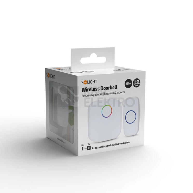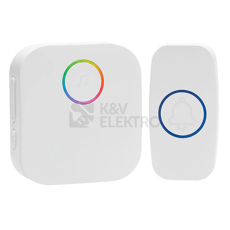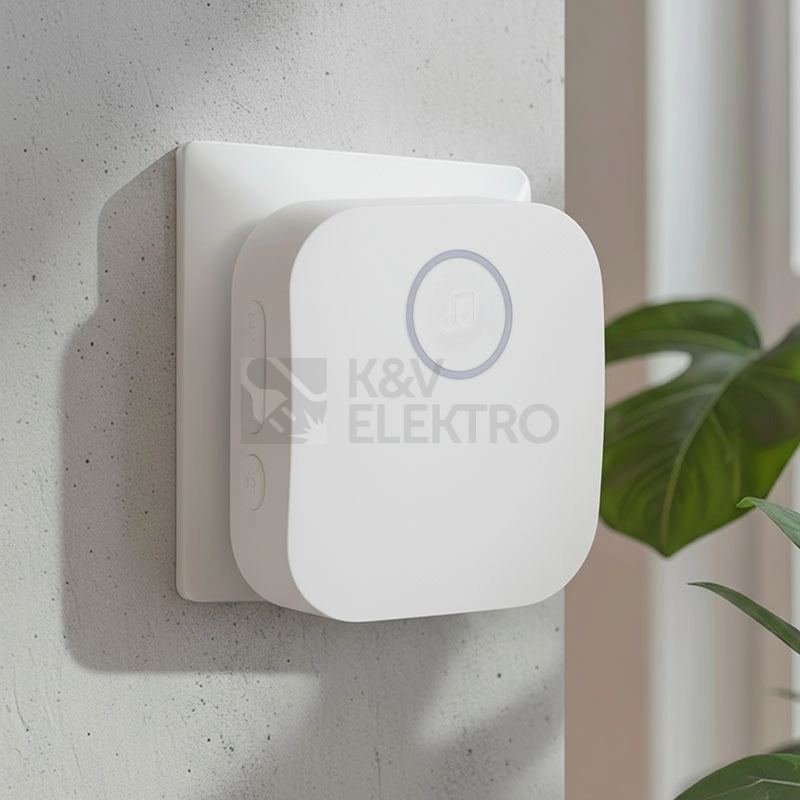 Tento bezdrátový zvonek nabízí více než jen zvuk – díky barevnému LED kroužku vás upozorní i opticky. Přijímač umožňuje přehrát si nastavenou melodii ještě před výběrem nové, díky tlačítku na přední straně. S dosahem až 180 metrů v otevřeném prostoru je vhodný i pro větší domy, kanceláře nebo provozovny.