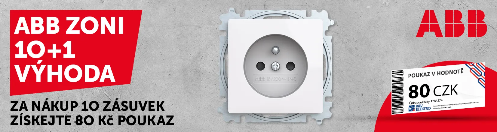 Styl, který vynikne! Objev zásuvky ABB Zoni s bonusem: ke každým desíti zásuvkám získáš jednu 80 Kč poukázku na příští nákup!