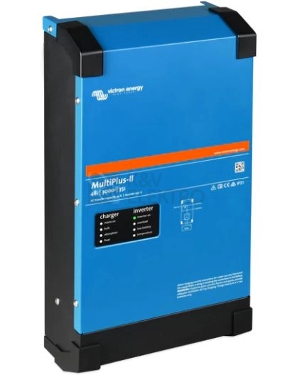 Hybridní měnič a nabíječ Victron energy MultiPlus-II je určen pro napětí MPP (Maximum Power Point) 38-66 V. Jmenovitý výstupní výkon je (AC) 3 000 VA. Hmotnost přístroje činí 18 kg.