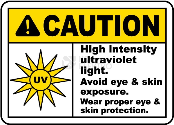 UV záření může způsobit poranění očí a pokožky! Je tedy nutné zabránit nežádoucímu ozáření osob, zvířat i rostlin!