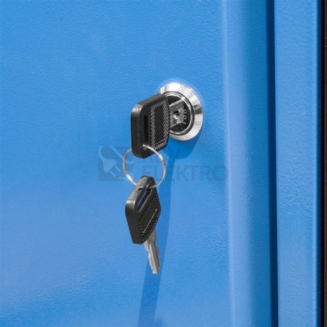 Vybavení: 6 zásuvek (d x š x v: 440 x 400 x 95 mm; max. nosnost: 25 kg, plně výsuvné - teleskopické vodicí lišty); uzamykatelná dveřová skříňka (d x š x v: 465 x 400 x 390 mm; dvířka s vnitřní výztuží a cylindrickým zámkem).