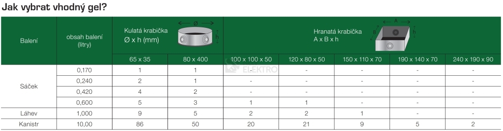 Dvousložkový zalévací gel - ETELEC MPGEL. Pro výplň a izolaci elektrických spojů. Rychle a jednoduše chrání spoj před nepříznivými přírodními vlivy jako je vlhkost, prach a další nečistoty. Složka gelu "A" i složka gelu "B" je průhledná hmota s nízkou viskozitou ("dobře teče") a po smíchání a vytuhnutí zůstává po celou dobu životnosti spoje rosolovitá. Při samotném vylévání krabičky nebo jiného média krásně zatéká do všech zákoutí. Spoj lze po vytuhnutí jednoduše rozebrat. Gel je šetrný k životnímu prostředí. Navíc nemá žadnou expiraci - můžete jej uchovávat/skladovat mít jej k použití kdykoliv bude potřeba.