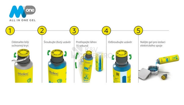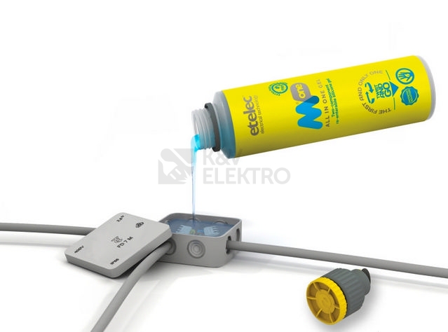 Gel dvousložkový MPone 600 (0,6 litru -1 láhev ), bez expirace, izolační zalévací gel, rozebíratelné spojení, barva: transparentní modrá, doba zpracovatelnosti: cca 15 sekund, doba tuhnutí: cca 8 minut při teplotě 23°C.Dvousložkový zalévací gel - ETELEC MPone. Pro výplň a izolaci elektrických spojů. Rychle a jednoduše chrání spoj před nepříznivými přírodními vlivy jako je vlhkost, prach a další nečistoty. Složky gelu "A" i složka gelu "B" jsou obsaženy v jedné láhvy. Po smíchání obou složek gelu je výsledná hmota průhledná s nízkou viskozitou a po vytuhnutí zůstává po celou dobu životnosti spoje rosolovitá. Při samotném vylévání krabičky nebo jiného média krásně zatéká do všech zákoutí. Spoj lze po vytuhnutí jednoduše rozebrat. Gel je šetrný k životnímu prostředí. Navíc nemá žadnou expiraci - můžete jej uchovávat/skladovat mít jej k použití kdykoliv bude potřeba. Dielektrická pevnost 25,5 kV/mm.