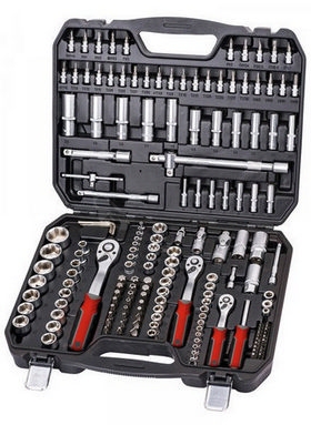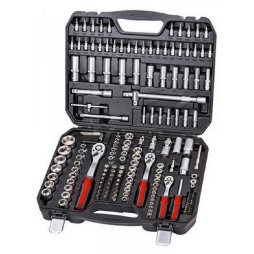 Všechny části jsou vyrobeny z chrom-vanadiové oceli kováním, dobře kombinovaná sada v přehledném plastovém kufru, ráčny s přepínací páčkou a uvolňovacím tlačítkem, ergonomicky tvarovaná rukojeť.