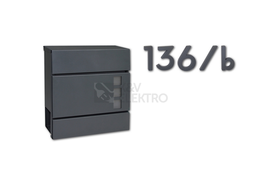 Hliníkové písmeno v 3D provedení se strukturovaným povrchemVýška: 100 mm, Povrch: strukturovanýBarva: antracit matná (AM)Možnost kombinace s poštovními schránkami ve shodném povrchu a barvě!Varianty způsobu montáže:Lepení - pomocí oboustranné lepicí pásky 3M. Vhodné pro středne hrubéa hladké povrchy, např. fasády, vnitřní stěny, dveře, … .Výhodou tohoto postupu je snadná a přesná montáž.Vrtání - našroubováním svorníku do čísel, vyvrtáním 2 otvoru do zdiva a vloženímhmoždinek. Výhodou je zcela pevná montáž a možnost předsazení čísel, které takvytváří efektní dojem, nevýhodu pak obtížnejší montáž a dosažení vodorovné osy.Přibití - našroubováním hřebu se závitem do čísla a pomocí gumové nebo dřevené paličky přibijtena příslušnou plochu.Balení vč. oboustranné lepicí 3M pásky, 2 ks hmoždinek, 2 ks svorníku s matkou a 2 ks hřebu.