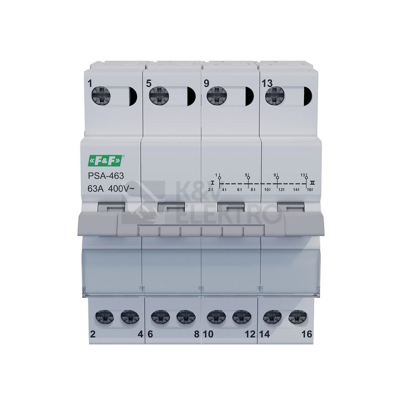 Specifikace Instalačního přepínače sítí F&F PSA-463 4pól 63A I-0-II