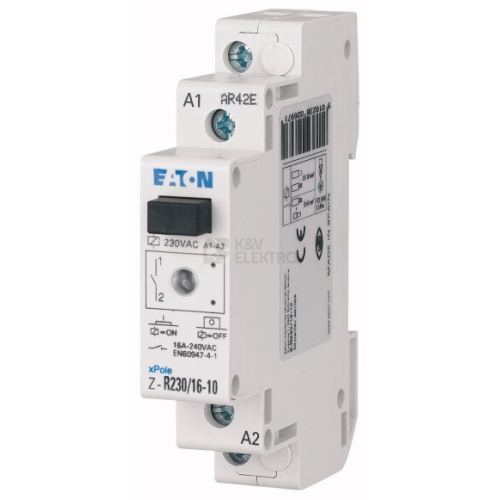 - Instalační relé EATON 230VAC 1NO Z-R230/16-10 ICS-R16A230B100 splňuje příslušné normy ČSN.