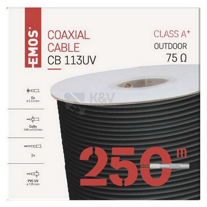 Koaxiální kabel venkovní černý CB113UV EMOS S5266 metráž