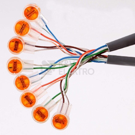 Slouží ke spojení 2 žil o průřezu 0,4-0,7mm2 (plný vodič) s maximálním průměrem izolace 1,52mm.