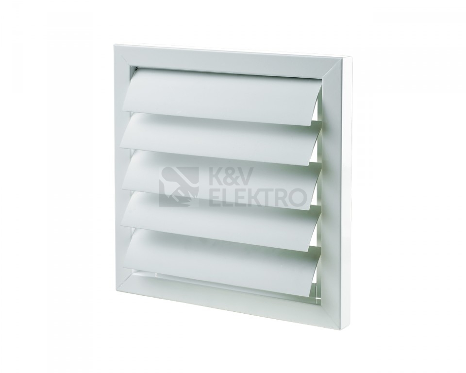 VENTS GRM 585 - kovová gravitační žaluzie 585x585.Kovová gravitační žaluzie bez nástavce (pro nástěnnou montáž). Kovová gravitační žaluzie bez kruhového nástavce - kovový rám, plastové lamely v bílé barvě.