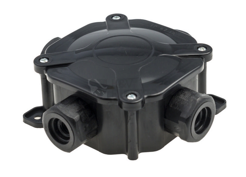 Krabice ACIDUR Malpro PG16 A.0035C IP67 černá je vyrobena ze samozhášivého a UV odolného plastu – polypropylenu. Má 4 průchody se závity a předvyraženými otvory pro pevné vodiče 4mm2.