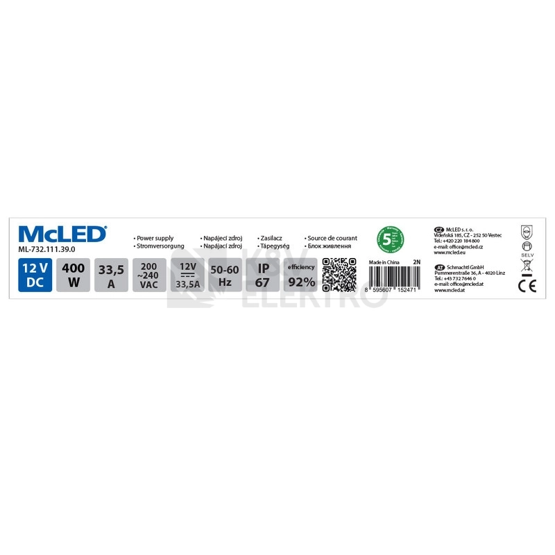 LED napájecí zdroj McLED 12VDC 33,33A 400W ML-732.111.39.0