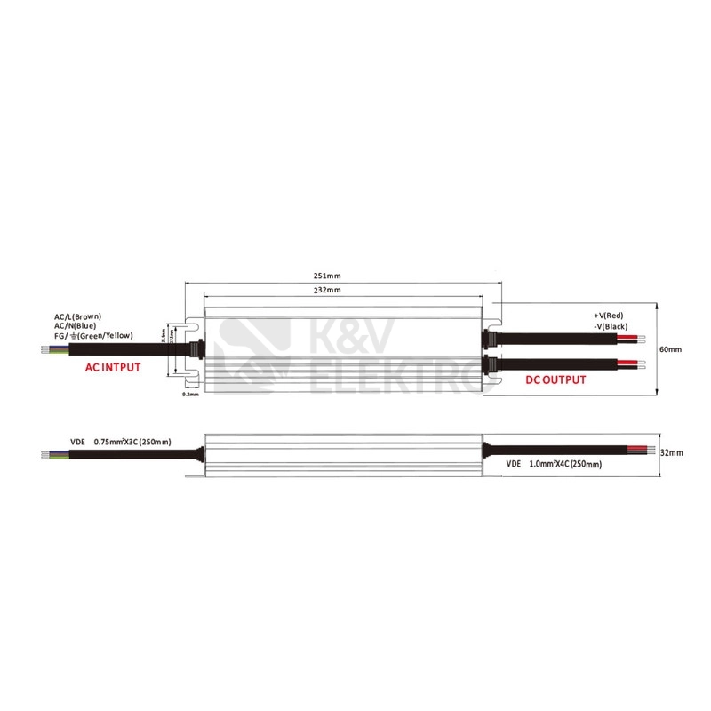 Zdroj konstantního napětí, výkon 400W, krytí IP67, výstup: 12VDC, max. 33,5A. Vstup: 200-264VAC, 50-60Hz, materiál krytu: hliník. Rozměry: 200x60x32mm, hmotnost: 1640g. Zdroj SELV. Při výběru zdroje počítejte s výkonovou rezervou min. 20%.