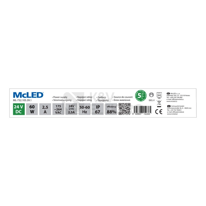 LED napájecí zdroj McLED 24VDC 2,5A 60W ML-732.105.39.1