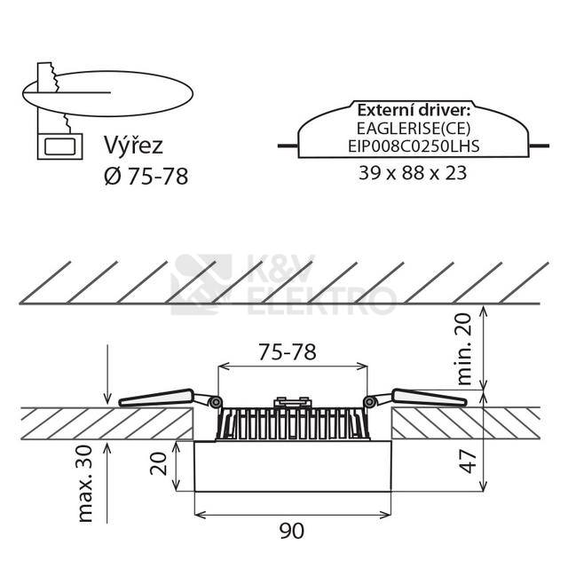 Montáž do izolovaných stropů, protipožární ochrana:Ne