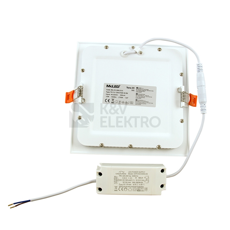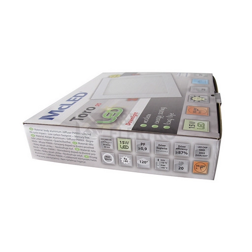 Podhledové LED světlo McLED Toro S15 má výkon 15 W, vyzařovací úhel 120°, světelný tok 1150 lm a teplotu chromatičnosti 4000 K. Životnost dosahuje 50.000 hodin a stupeň krytí IP20.