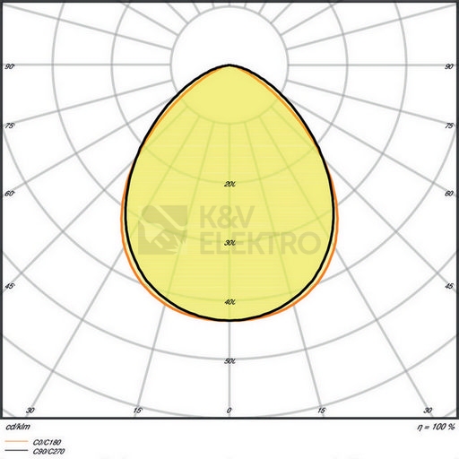 - Nulová hodnota horní účinnosti svítidla (ULOR 0 %) při montáži v náklonu 0°