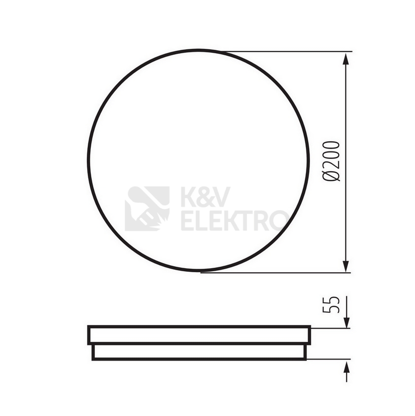 Rozměry LED svítidla jsou: výška 55 mm, Ø LED panelu 200 mm.