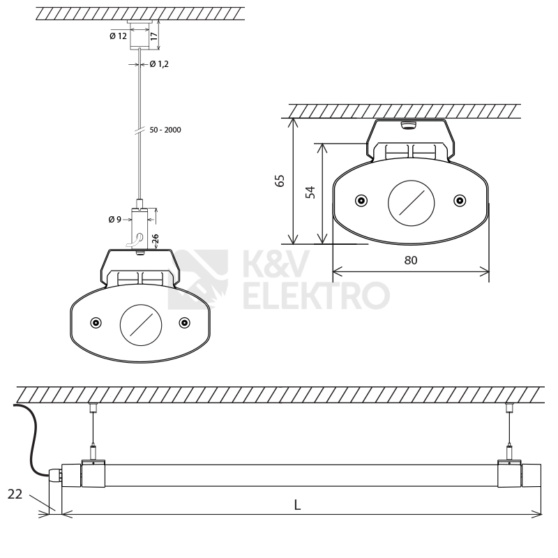 Montáž do izolovaných stropů, protipožární ochrana:Ne