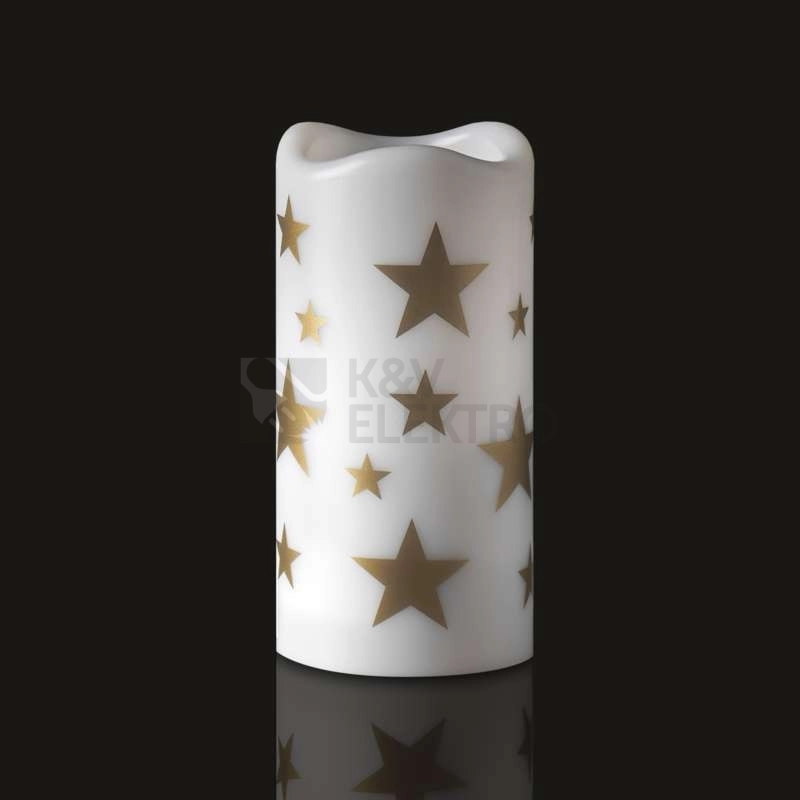 Malebná LED vánoční svíčka slouží zároveň jako vánoční dekorativní projektor do interiéru – při tmě v místnosti budou na vašich stěnách vidět roztomilé hvězdy. Tato vánoční dekorace lze nabíjet 3 mikrotužkovými bateriemi, nebo přes USB kabel.