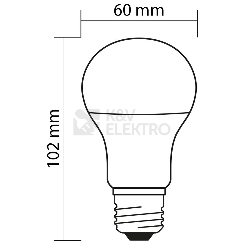 LED žárovka A60 4,8W (ekvivalent 40W), patice E27, 230V, 2700K - teplá bílá, světelný tok Φ use 360° 470lm, vyzařovací úhel 200°, CRI80, úspora až 84%, životnost až 25.000h, 15.000 spínacích cyklů, rozměry ø 60 x 102 mm, nestmívatelná