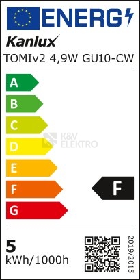Specifikace LED žárovky GU10 Kanlux 4,9W (40W) studená bílá (6500K), reflektor 100° 34966