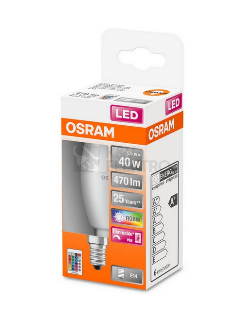 LED žárovka s dálkovým ovládáním E14 OSRAM 4,9W (40W) teplá bílá (2700K)