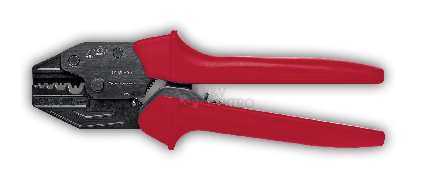 Krimpovací kleště na dutinky jsou dlouhé 220 mm a mají průřez v rozmezí 0,1 – 16 mm2. Tyto lisovací kleště na dutinky disponují kolébkou k připevnění odizolovacího adaptéru. Mají automatický zpětný chod a blokovací mechanismus.
