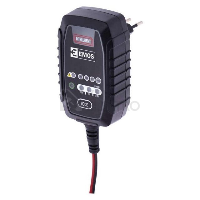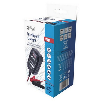 EMOS 6 V/12 V, 0,8 A inteligentní nabíječka je určená pro automobily, motocykly, záložní akumulátory. Nabíjí olověné aku 1,2–30 Ah WET (kyselinové), MF (bezúdržbové), záložní akumulátory VRLA, AGM, GEL i 12,8 V LiFePO4 akumulátory 2–15 Ah. Nabíječka slouží pro režim udržování akumulátorů všech velikostí. Nabíječka kromě nabíjení i udržuje akumulátor v trvale nabitém stavu. Nabíječka disponuje pamětí, při výpadku napájení si pamatuje režim nabíjení, pokračuje po obnovení napájení. Výhodou je možnost trvalého připojení k nabíjenému akumulátoru–udržovací režim.