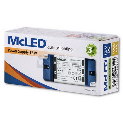Napájecí zdroj pro LED pásky české značky McLED slouží pro malé instalace LED pásků 12 V (výkon činí pouze 12 W). Hlavní výhodou tohoto trafa určeného pro interiéry je možnost montáže na/do nábytku (poznáte podle označení písmenem F v trojúhelníku) a dalších hořlavých materiálů.