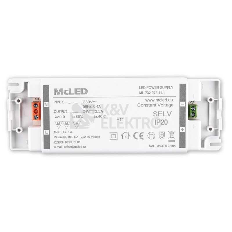 Nábytkový LED napájecí zdroj McLED 24VDC 60W 2,5A ML-732.072.11.1