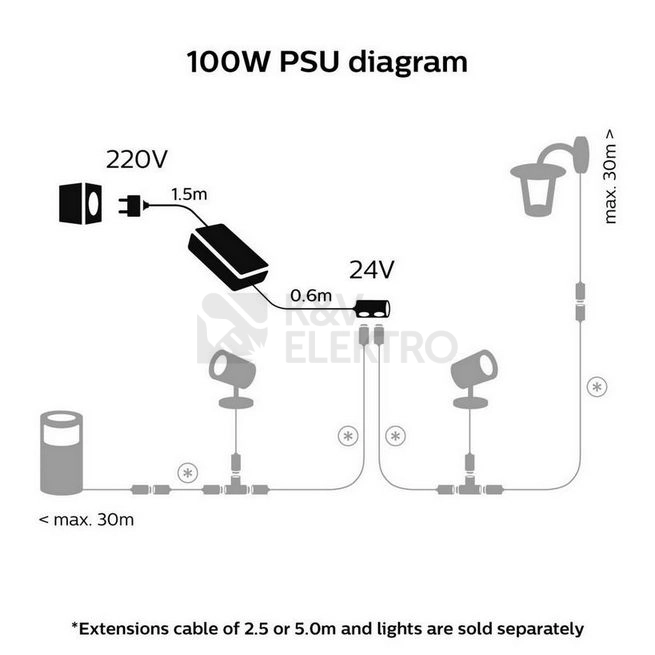 Tento venkovní napájecí zdroj Vám umožní rozzářit celou zahradu chytrým světlem. Jednoduše připojte dva kabely (každý může měřit až 30 metrů) ke konektoru libovolného nízkonapěťového venkovního svítidla Philips Hue. Na jeden zdroj můžete připojit svítidla o celkovém výkonu 100 W.. Rozjasněte tmavé cesty, osvětlete si pozemek nebo vytvořte jedinečnou atmosféru na terase. Můžete to udělat sami, pomocí bodových světel nebo světelných sloupků Hue. Výrobky jsou napájené nízkým napětím, bezpečně se používají a snadno se instalují. Venkovní osvětlení bez námahy: jednoduše tvořte a rozšiřujte, jak se vám líbí.