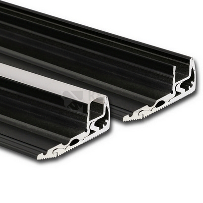 Nášlapný černý hliníkový profil pro LED pásky, rozměry průřezu cca 59x22 mm. Součástí je matný difuzor, který lze do profilu nacvaknout. Tento profil je určen pro krytí a chlazení LED pásků do šíře 12 mm a max 28,8W/m. Vhodný pro montáž na schodnice jako protiskluzové provedení. Upevnění k podkladu lze provést pomocí vrutů, lepidel, přičemž jsou upevňovací otvory překryty vrchním profilem. K profilu lze zakoupit koncovky.