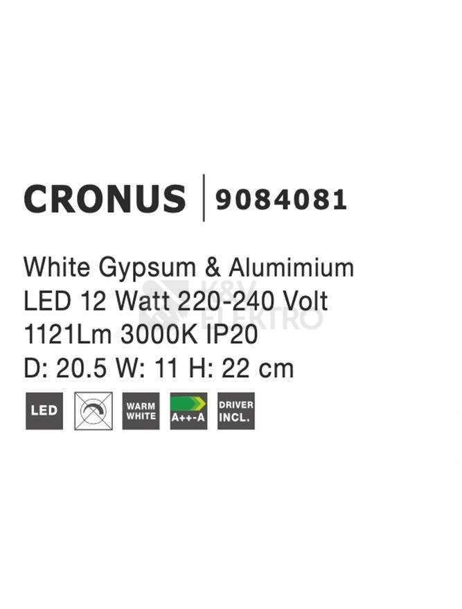 Nástěnné LED svítidlo NOVA LUCE CRONUS 12W 3000K 9084081 disponuje dobrým poměrem cena/výkon od prověřeného výrobce NOVA LUCE. Další informace k produktu naleznete níže.