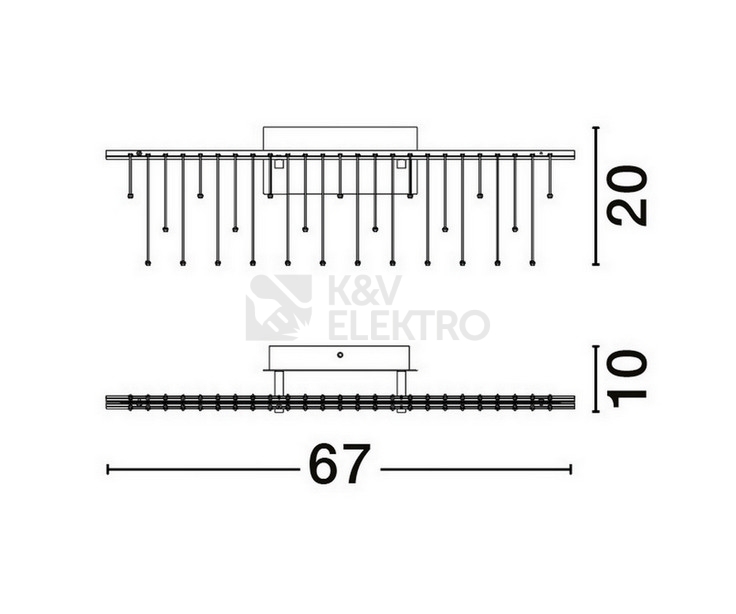 Výrobek je vyroben z kvalitních materiálů, skříň svítidla je z odolného černého materiálu, který mu dodává na eleganci. Rozměry svítidla jsou 670 mm na délku, 100 mm na šířku a 200 mm na výšku.