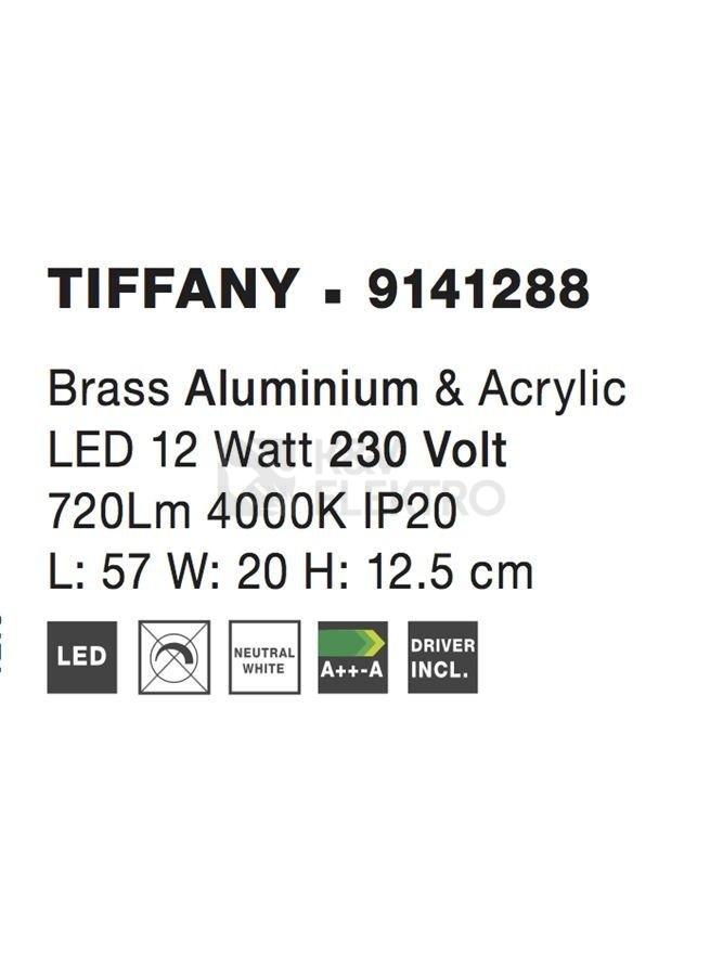 Specifikace nástěnného LED svítidla NOVA LUCE TIFFANY 12W 4000K 9141288