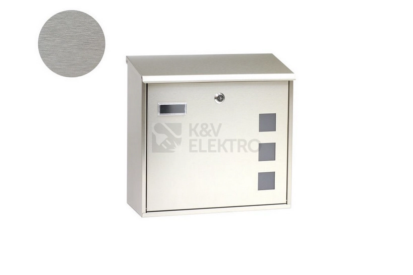 Nerezová poštovní schránka s okénky z matného plexiskla umožňující částečný průhled do jejího vnitřku a zadním vhozem Richter BK.703 .G.Z.N nerez matná